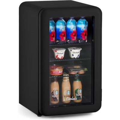1.7 cu ft Compact Mini Fridge with Glass Door - Small Refrigerator for Bedroom, Office, Dorm - Ideal for Soda Drinks, Beer (Black)